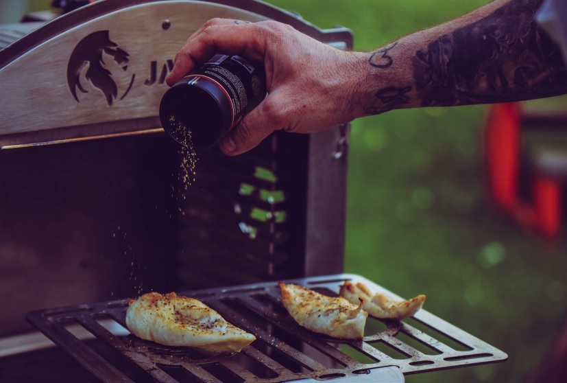 Wenn dieser schön braun ist, legt ihr ihn auf ein Küchenkrepp zum Abtropfen. In die Schale legt ihr jetzt euren geschnitten Salat. Als kleiner Tipp: Zieht die Schnittflächen des Salat einmal durch das ausgelassene Bacon Fett. Nun legt eure Hähnchenbrust auf das Rost, schiebt diesen in den unteren Drittel eures Oberhitzegrills. Grillt diese von beiden Seiten ca. 4-5 Minuten langsam an. Nach der Zeit sollte die Hühnerbrust schon fast ihre Kerntemperatur haben. Bräunt sie nun auf hoher Hitze und obere Schiene an. Wenn die Hühnerbrust eine schöne Farbe hat, würzt diese mit eurer Pfeffermischung und legt sie auf einem Brett zum ruhen.